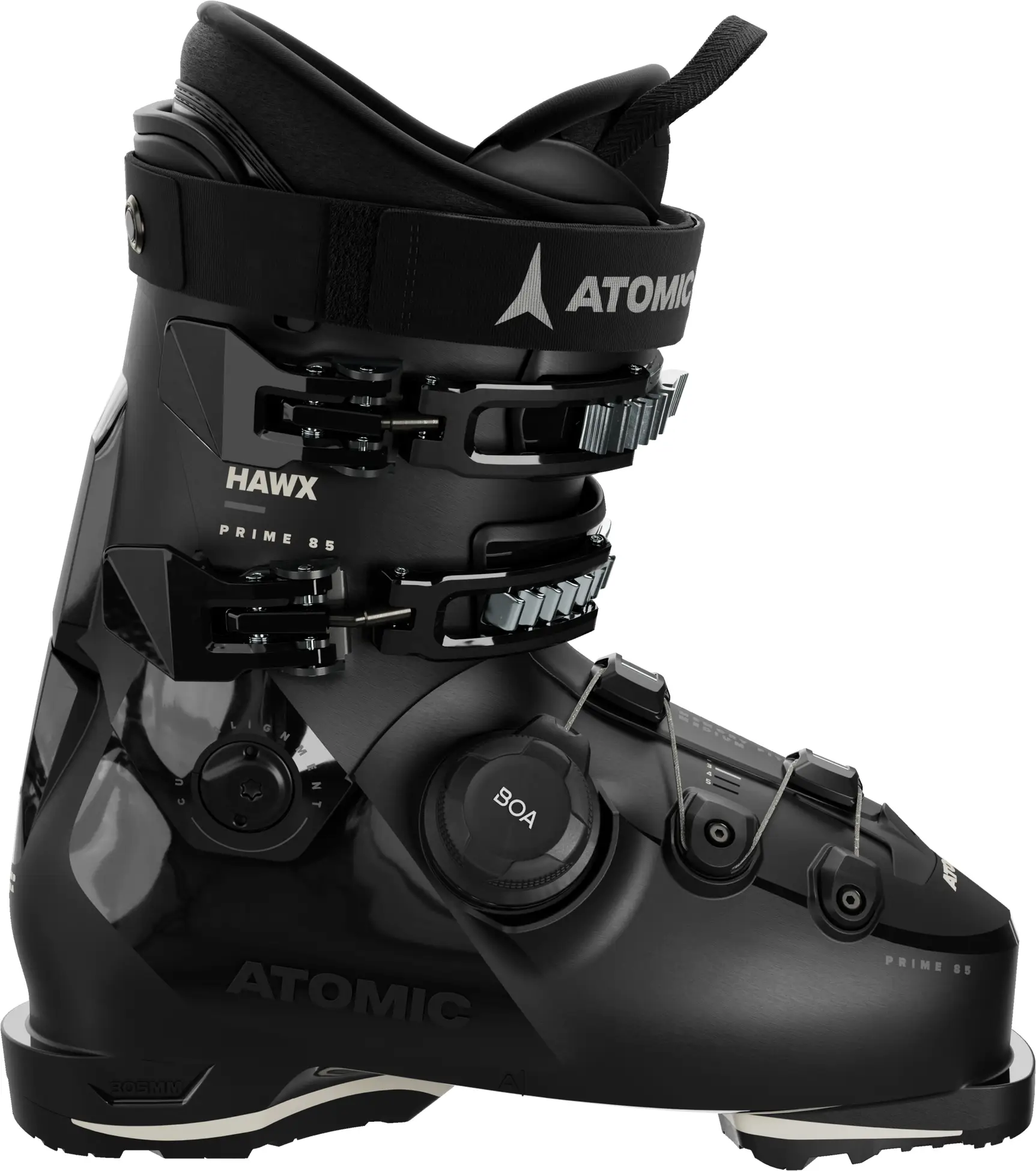 Atomic Hawx Prime 85 BOA W GW docenią narciarki all mountain poszukujące butów o średnio szerokiej skorupie 100 mm i subtelniejszym fleksie. BOA® Fit System w dolnej części skorupy otacza stopę, zapewniając precyzyjne dopasowanie z możliwością mikroregulacji w obu kierunkach. Najnowsza odsłona konstrukcji Prolite łączy smukły profil ze strategicznymi wzmocnieniami w kluczowych strefach, aby zapewnić zjazdową wydajność. Liner 3D Bronze z profilowaniem 3D w obszarze kostki i pięty zapewnia anatomiczne dopasowanie już od momentu wyjęcia butów z pudełka. Skorupkę, mankiet i liner butów można w kilka minut dopasować do anatomii stóp dzięki technologii termoformowania Memory Fit. Kątowe nakładki GripWalk poprawiają przyczepność, jednocześnie zapewniając przekaz sił standardowej podeszwy alpejskiej. Aby zapewnić dopasowanie do kobiecej anatomii, wyposażono je w niższy mankiet i zapewniono większą objętość na wysokości nogi. Aby uzyskać jeszcze więcej miejsca w okolicy łydki, wystarczy wyjąć spojler mankietu Adaptive Fit System (AFS).